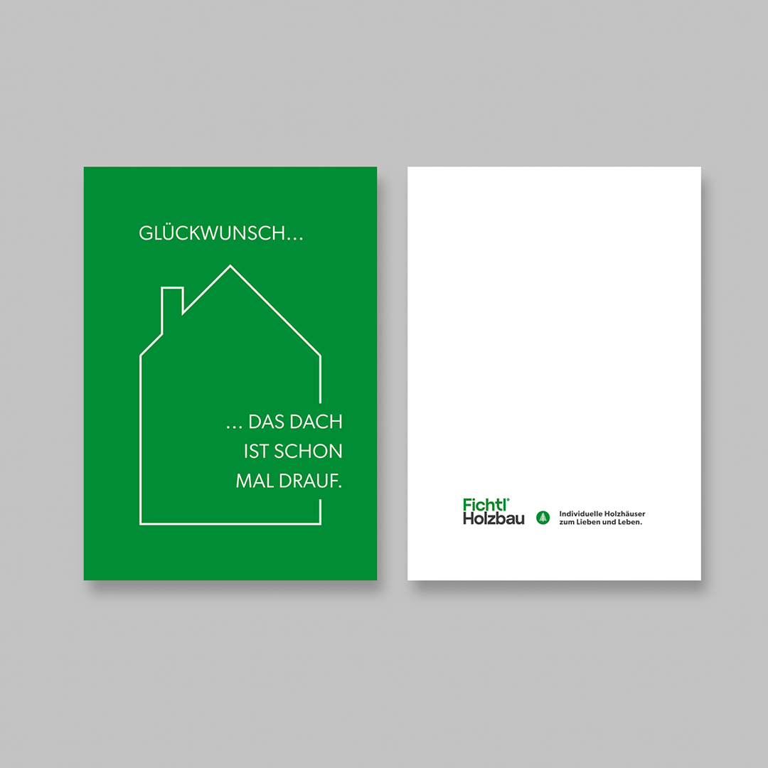 Die charakteristische Farbwelt von Fichtl – Dunkelgrün, Olivgrün, Hellgrau, Pink – haben wir konsequent weitergedacht und in Kommunikationsmitteln angewendet, die funktionieren: Printmaterialien, die in der Hand überzeugen, Social-Media-Inhalte, die Lust auf Holzbau machen, und eine Website, die so klar ist wie die Häuser, die Fichtl baut.